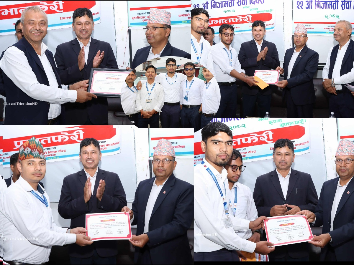 २२ औँ निजामती सेवा दिवस, २०८२ को अवसरमा आयोजित अन्तरकार्यालय हाजिरीजवाफ प्रतियोगितामा प्रथम स्थान हासिल गरी पुरस्कार तथा प्रमाणपत्र ग्रहण गर्दै